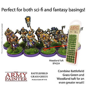 A special scatter resembling grass or light moss. Can be used to cover the entire base or in smaller clumps on top of Brown Battleground.
