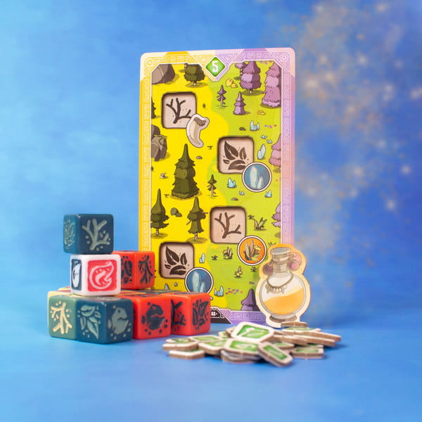 Rozgrywka składa się z 4 rund. Na początku każdej rundy wszyscy rzucacie kośćmi, by potem umieszczać je na planszy wioski albo kartach boru. We wiosce będziecie wykonywać różne akcje specjalne, z kolei w borze oswajać zwierzęta i zbierać składniki do eliksirów. Oczywiście pole, na którym kładziecie kość, musi zgadzać się z wynikiem tej kości. W czasie swojej tury każdy z Was wykonuje w dowolnej kolejności 3 rzeczy: musi umieścić jedną ze swoich kości, może przyrządzić 1 eliksir oraz może wypić 1 eliksir ze swojej ręki.