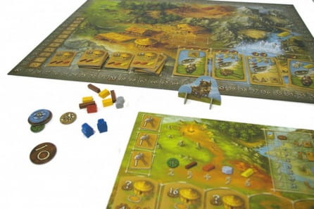- 58 żetonów surowców (20 drewna, 16 cegieł, 12 kamieni, 10 złota);