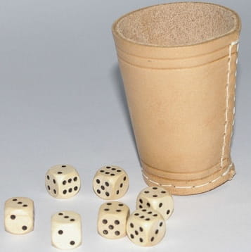 - 1 skórzany kubek na kości;