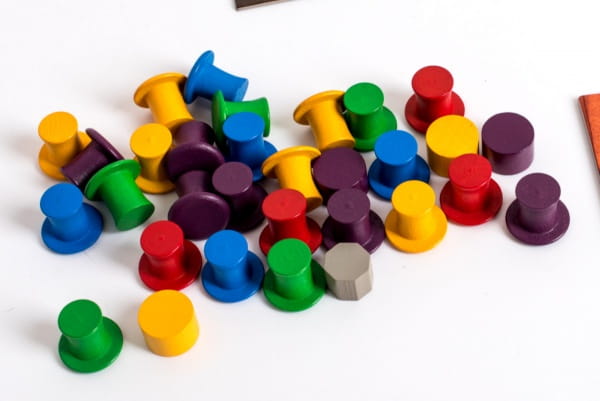 - 5 drewnianych znaczników kolejności w 5 kolorach