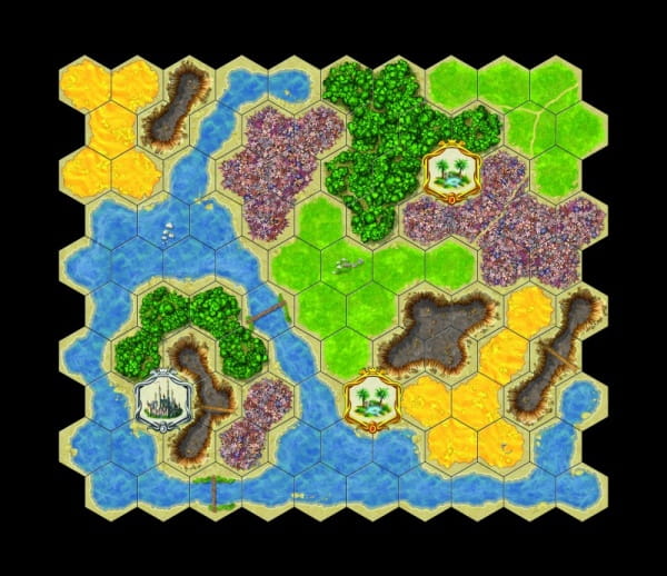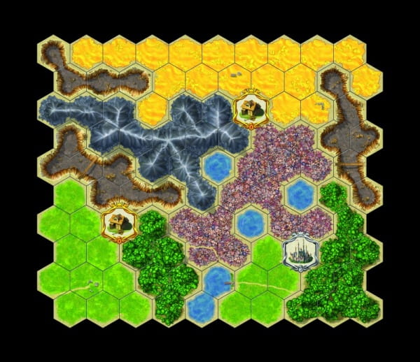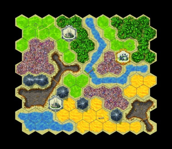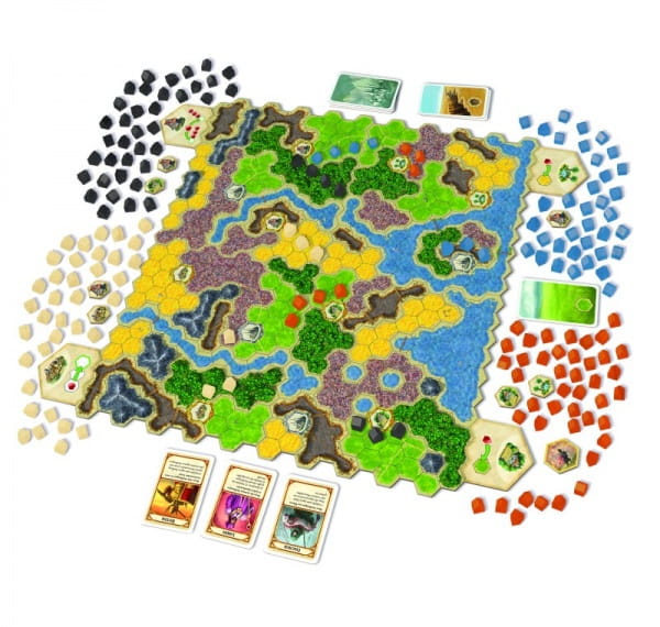 Rozgrywka toczy się na modularnej planszy, pokrytej siatką sześciokątnych pól, reprezentujących dziewięć różnych rodzajów terenu.