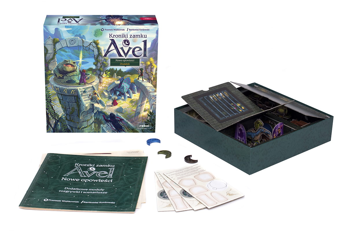 Kroniki zamku Avel: Nowe opowieści to pierwsze duże rozszerzenie do rodzinnej gry o bohaterach. Oprócz alternatywnego potwora, którego podmieniacie za Monstrum, wprowadza też 3 inne uniwersalne moduły, które możecie dołączyć do dowolnej rozgrywki, a także 3 scenariusze przygód z nowymi zasadami i zmienionymi warunkami zwycięstwa.