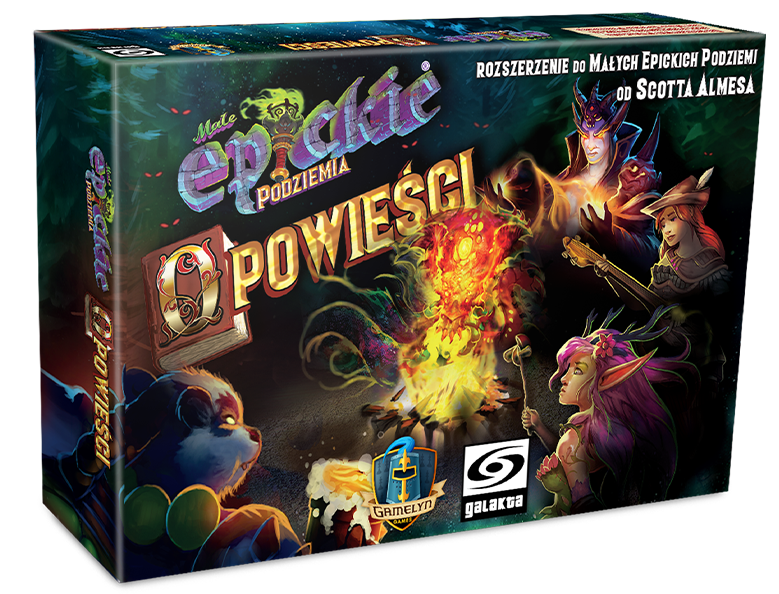 W rozszerzeniu Małe epickie podziemia: Opowieści, bohaterowie gromadzą się w cieple obozowego ogniska, świadomi niebezpieczeństw w otaczającej ich kniei. Przybyli na Wybrzeże Goblinów z krain całego Aughmoor i każde z nich ma coś do opowiedzenia nowym towarzyszom. Jedni są tu dla sławy i chwały, inni dla złota, a niektórzy mają zgoła bardziej nikczemne cele. Ale w tej chwili ci tak różni towarzysze są sojusznikami, zgodnymi razem stawić czoła przeciwnościom: wejść do podziemi, pokonać Bossów, wypełnić zadania i uratować świat.