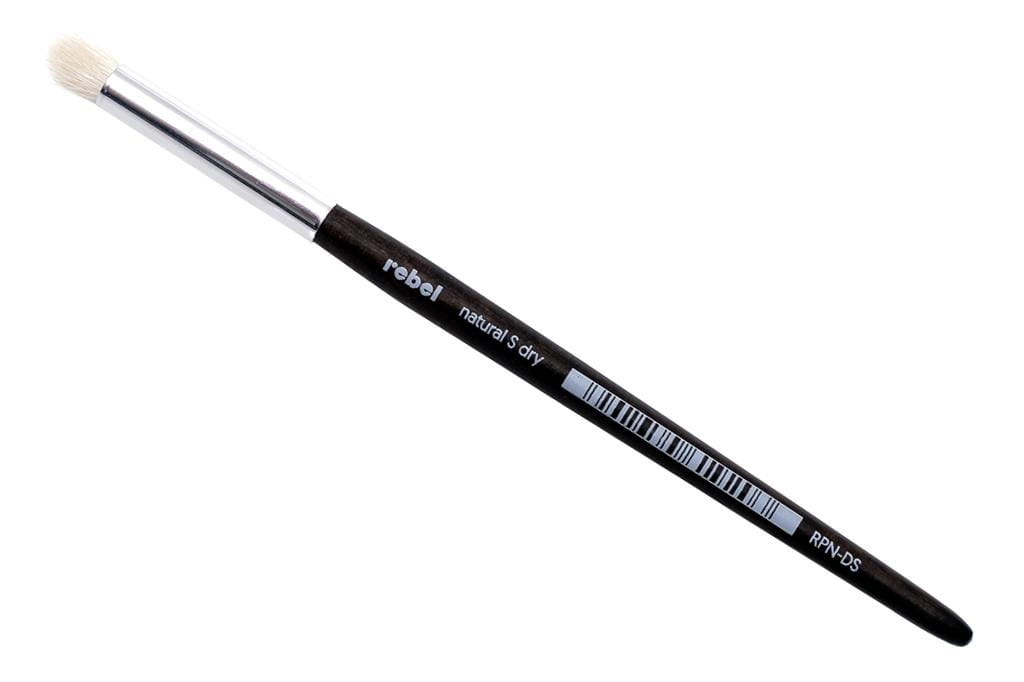 Rebel: Pędzel naturalny - Dry - S to najwyższej jakości pędzel do techniki suchego pędzla. Naturalne kozie włosie ukształtowane w sposób ułatwiający DryBrush. Jeśli chcesz by Twoje przejścia między kolorami były płynne i chciałbyś mieć większą kontrolę nad procesem nakładania farby, to produkt właśnie dla Ciebie.