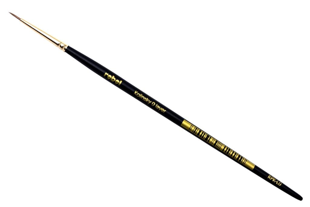 Rebel: Pędzel Kolinsky naturalny - Layer - 0 to wysokiej jakości pędzel do malowania farbami akrylowymi. Wyselekcjonowane włosie łasicy Kolinsky to jedno z najlepszych włosi w zastosowaniu w malarstwie. Spiczasta końcówka, elastyczność włosia oraz duża zdolność utrzymywania farby sprawiają, że jest to pędzel przeznaczony dla malarzy szukających wysokiej jakości produktu.