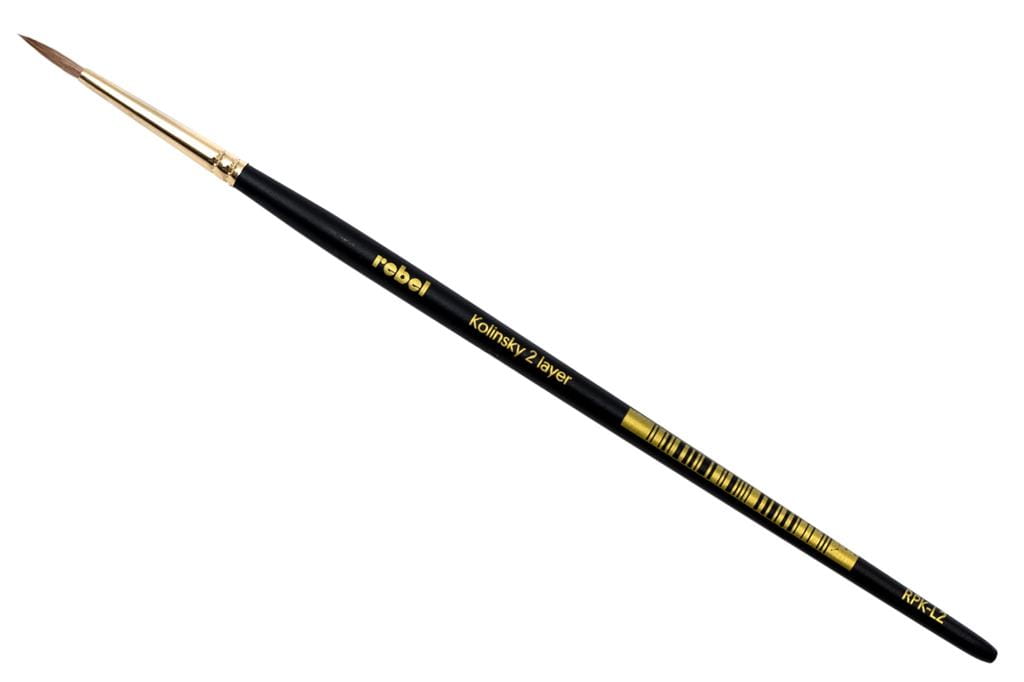 Rebel: Pędzel Kolinsky naturalny - Layer - 2 to wysokiej jakości pędzel do malowania farbami akrylowymi. Wyselekcjonowane włosie łasicy Kolinsky to jedno z najlepszych włosi w zastosowaniu w malarstwie. Spiczasta końcówka, elastyczność włosia oraz duża zdolność utrzymywania farby sprawiają, że jest to pędzel przeznaczony dla malarzy szukających wysokiej jakości produktu.