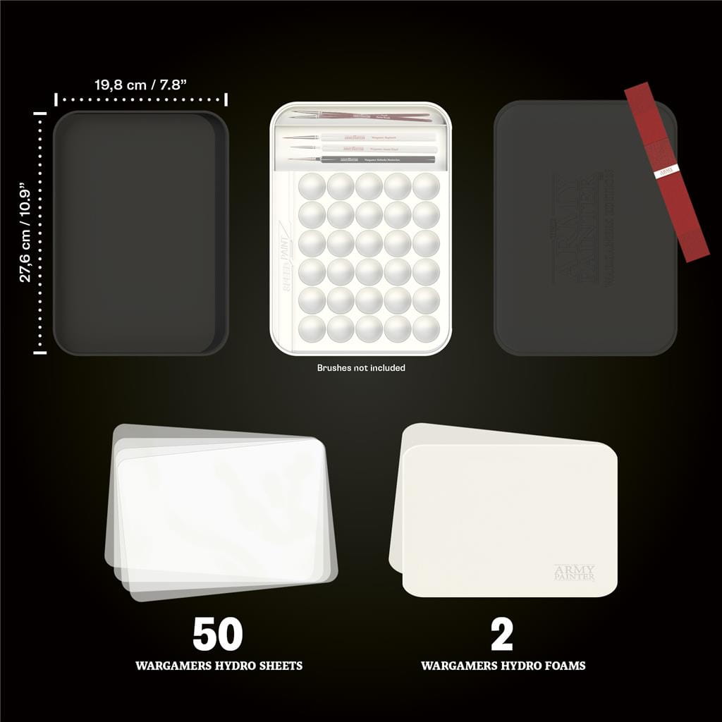 The Army Painter: Wet Palette - Wargamers Edition to najwyższa jakość i starannie przemyślany design produktu. Jest to wspaniałe narzędzie dla każdego miłośnika pomalowanych figurek. Produkt pomaga przedłużyć świeżość farb między sesjami malowania. The Army Painter: Wet Palette - Wargamers Edition posiada specjalną warstwę wewnętrzną wykonaną z twardego plastiku, zawierającą 30 wgłębień na odrębne kolory farb oraz miejsce na 6 pędzli typu Wargamer i 10 pędzli typu Hobby.