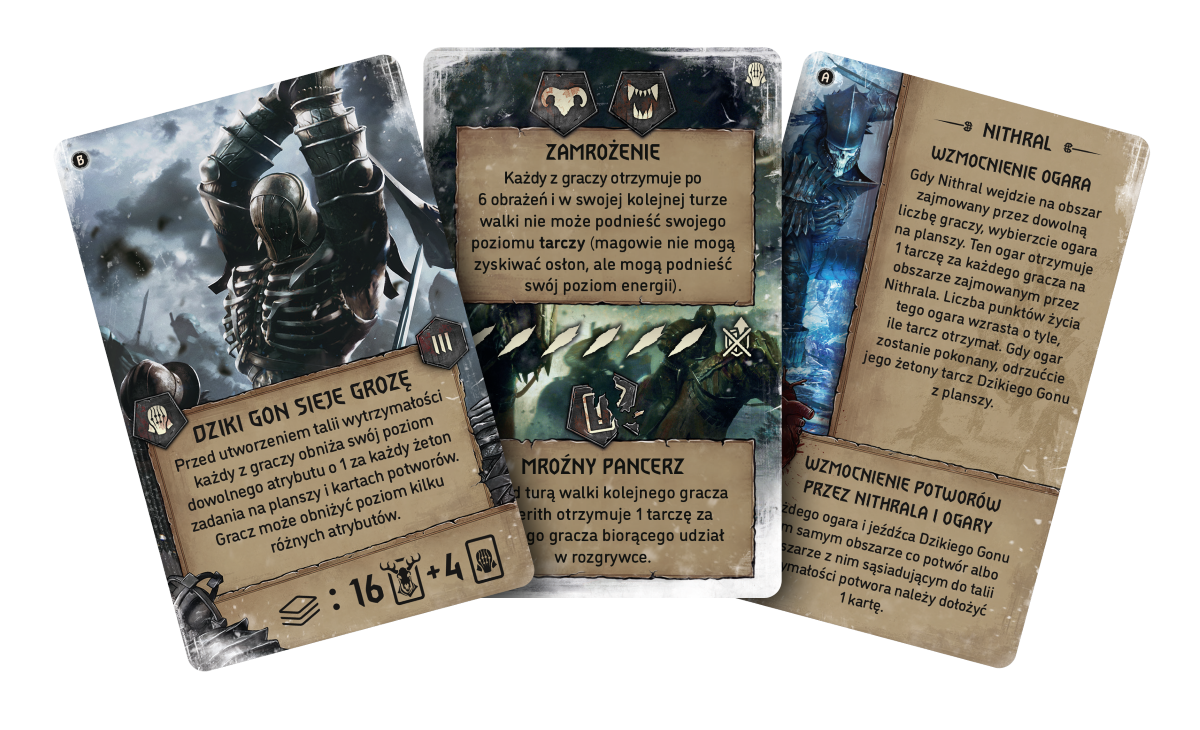 Wiedźmin: Stary Świat - Dziki Gon to rozszerzenie wprowadzające kooperacyjne wyzwanie dla wszystkich zasiadających przy stole wiedźminów. Podczas rozgrywek uczestnicy będą realizowali zadania i walczyli z potworami oraz ogarami Dzikiego Gonu, by ostatecznie doprowadzić do starcia z jednym z upiornych jeźdźców: Eredinem, Nithralem, Imlerithem albo Caranthirem. Jeśli w ostatniej rundzie zdołają go pokonać, zanim wszyscy wiedźmini zostaną powaleni, wspólnie zwyciężą. W przeciwnym razie (również wspólnie) poniosą klęskę i będą mogli podjąć wyzwanie ponownie.