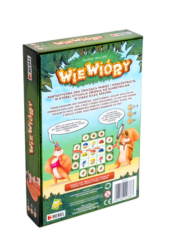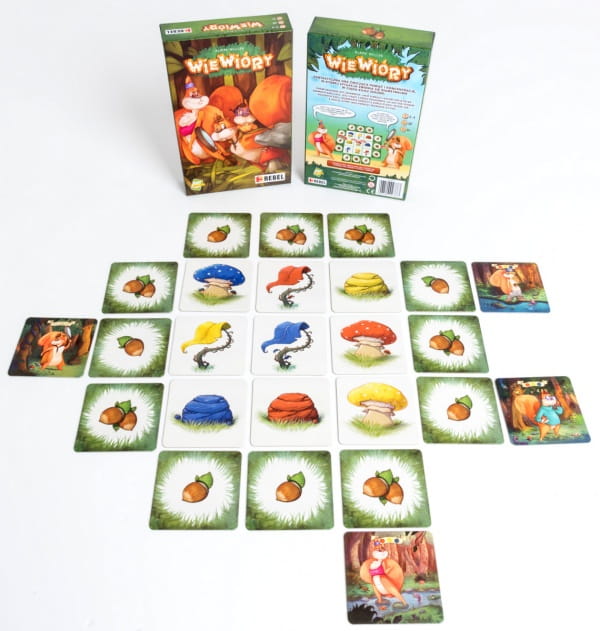Wiewióry wydają się być zwodniczo nieskomplikowaną grą. Między Twoją Wiewiórą, a orzeszkiem znajdują się tylko trzy kafelki, a jedyne co Ty musisz zrobić, to po kolei powiedzieć, co znajduje się na ich odwrocie. Najpierw oczywiście strzelasz, powiedzmy "Liść!" - odwracasz i udało się! Faktycznie był tam liść. Zostawiasz kafelek obrócony z liściem do góry. Następny... może kamień? Odwracasz go i okazuje się, że niestety nie. Na drugiej stronie kafelka był grzyb. Szkoda, Twoja runda się kończy, ale zaraz będzie znowu Twoja kolejka... ale chwila, co było po drugiej stronie pierwszego kafelka?? Jakoś nie zapamiętałeś... A niech to, ktoś idzie w przeciwnym kierunku i właśnie obrócił Twój kafelek i teraz już zupełnie się pogubiłeś.