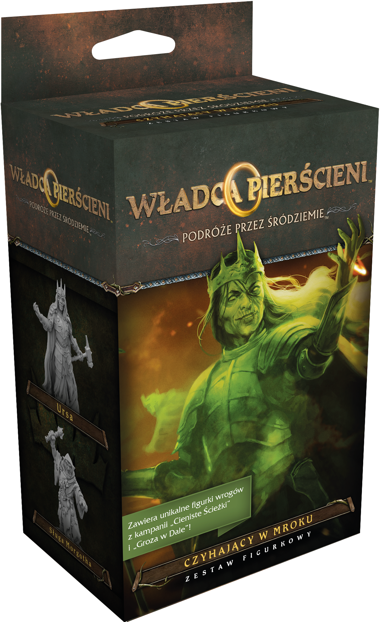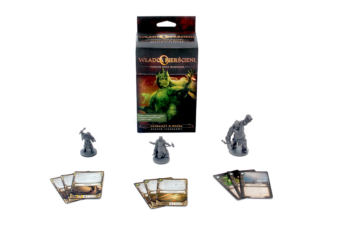 Władca Pierścieni - Podróże przez Śródziemie: Czyhający w Mroku to zestaw 3 szczegółowo wykonanych, niepomalowanych plastikowych figurek nazwanych wrogów pojawiających się w kampanii Cieniste Ścieżki oraz w kampanii Groza w Dale. Dodatkowo w pudełku znajdziesz 6 nowych przedmiotów i 3 nieznane dotąd, ekscytujące tytuły.