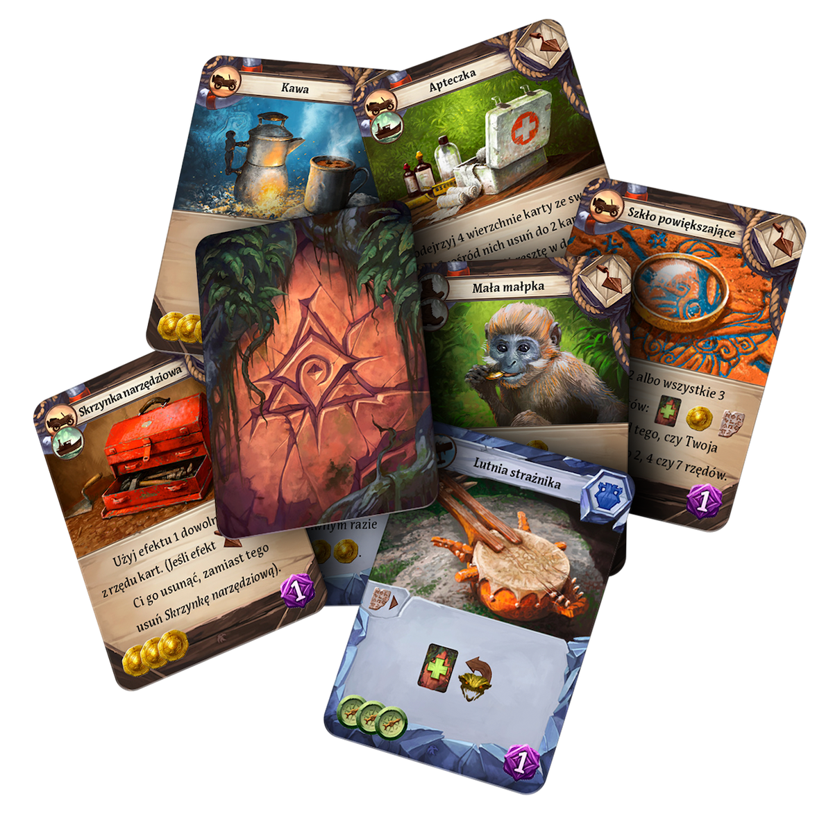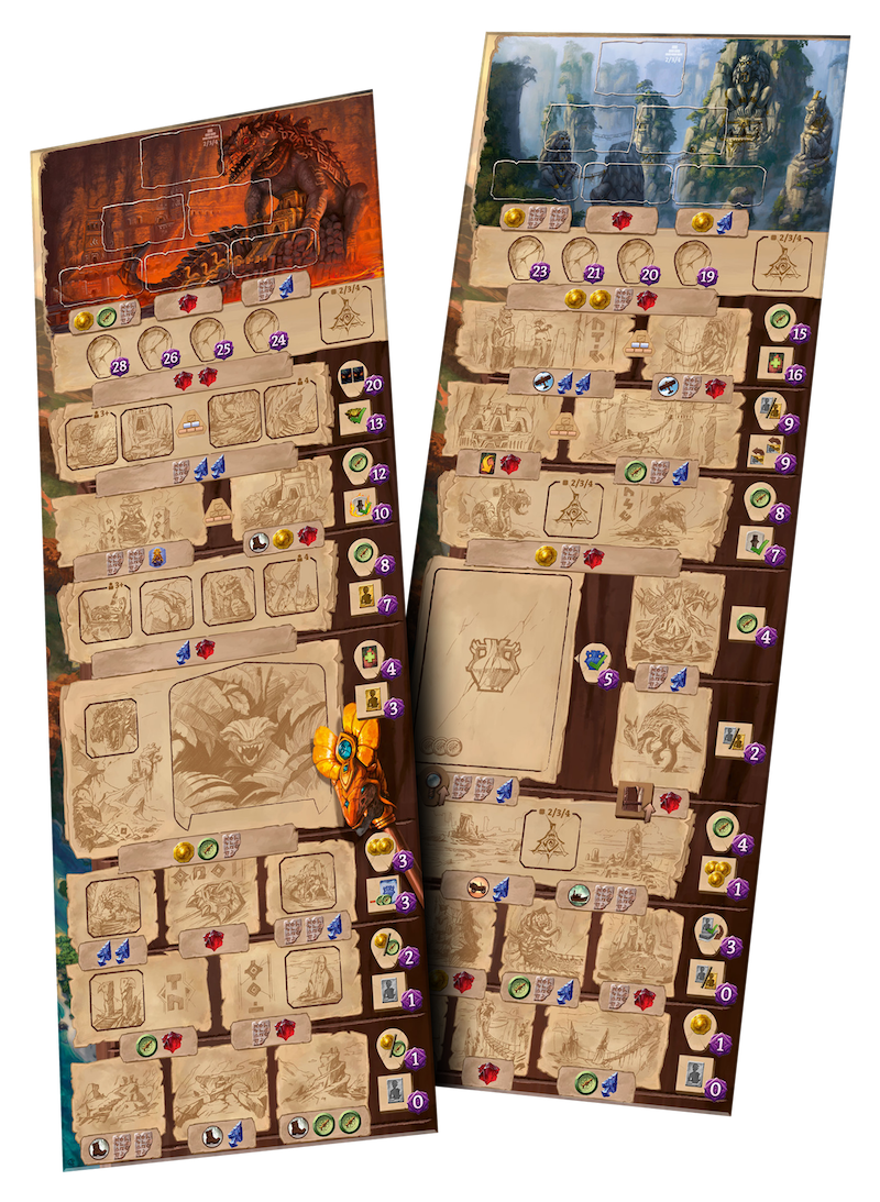 - 2 nowe świątynie do eksploracji: Świątynia Małpy oraz Świątynia Jaszczura. Możemy ich używać zarówno z przywódcami ekspedycji, jak i bez nich, alternatywnie do terenów z wersji podstawowej. Aby zagrać z użyciem jednego z nowych torów badań, należy go po prostu umieścić na torze badań z dowolnej strony standardowej planszy.
